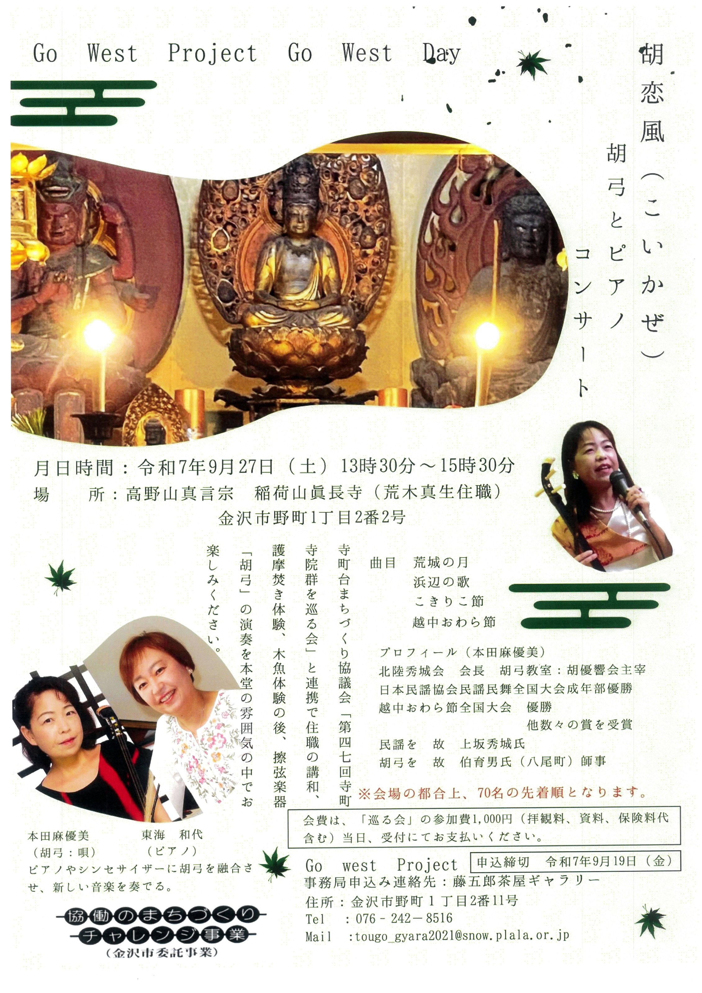 午後2時半より本堂にて胡弓とピアノのコンサートになります。