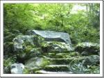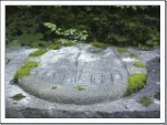 普通の仏足石は釈尊の足跡を彫ったものだがここの仏足石は宗祖弘法大師の御足跡として祠られている。石の左右に日月の模様が浮かんでいるのが特長でこれは当寺が山と川を背影に陰陽和合をとなえるものである。